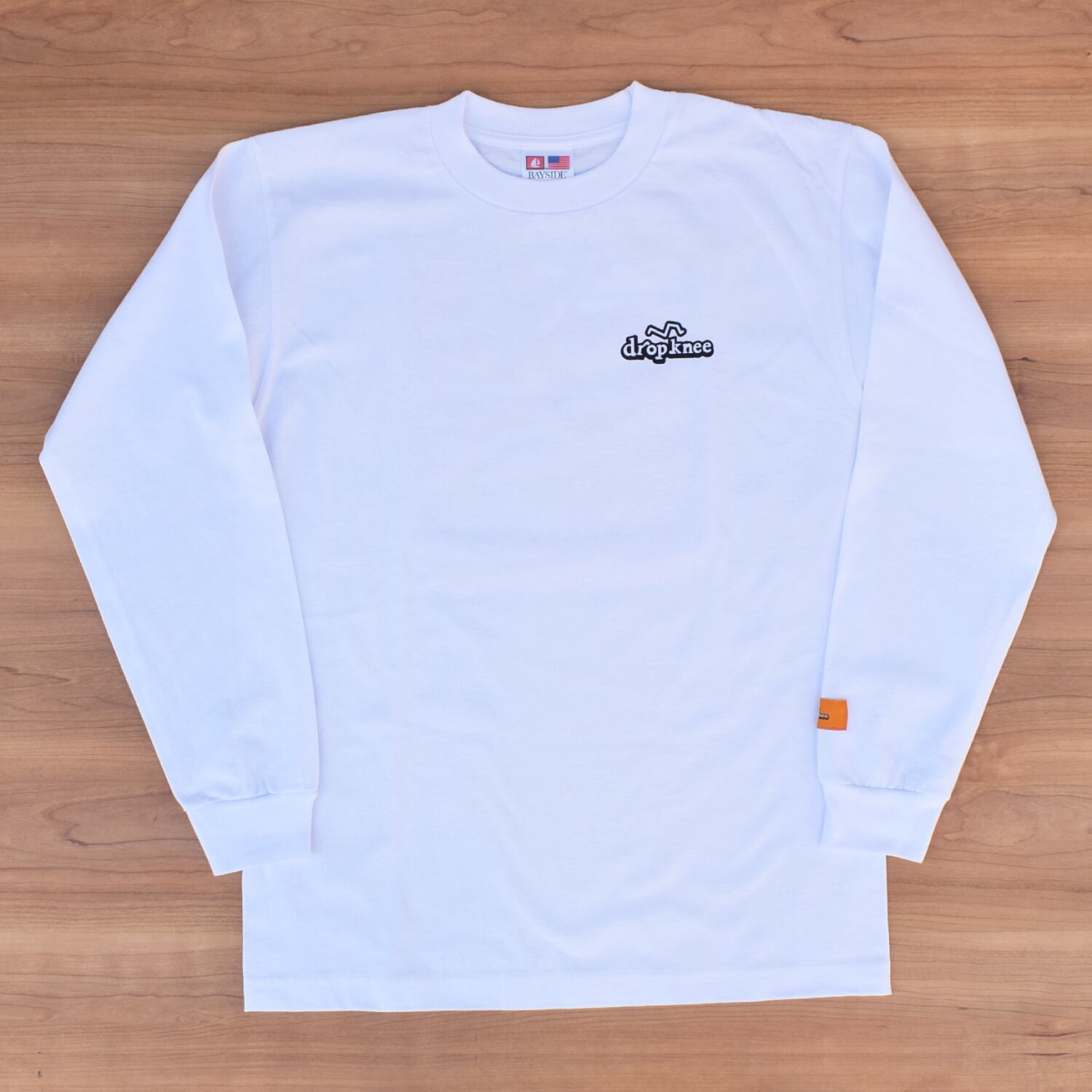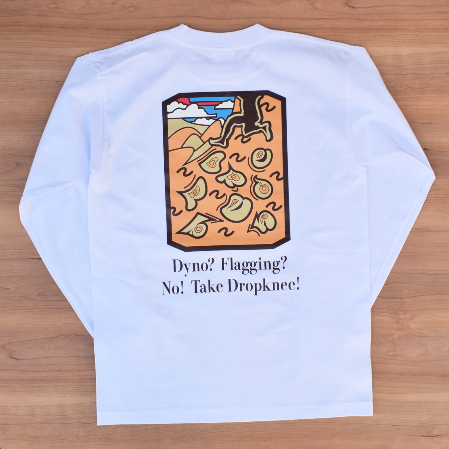 dropknee / Back print "Take Dropoknee!" Long sleeve T-shirts 6.1oz (White)